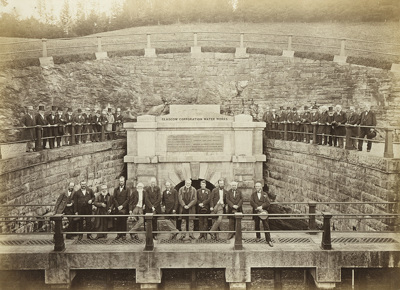 In the Views of the Line of Loch Katrine Water Works, 1859, Annan's photographs document the construction of a 35 mile aqueduct to supply the city of Glasgow with fresh water from Loch Katrine in the Trossachs. The later Photographic Views of Loch Katrine show the completed work in 1877.